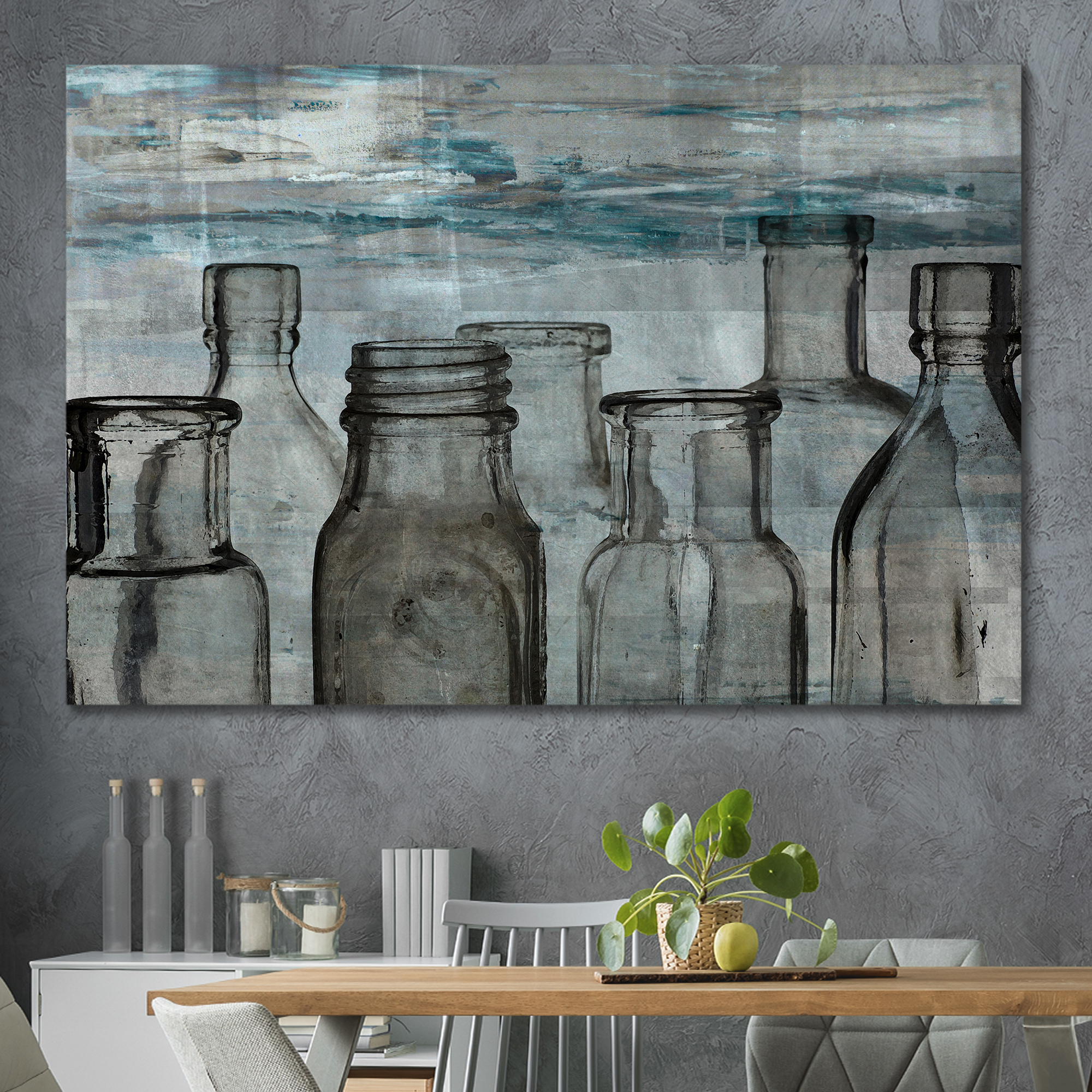 Canvas Wall Art - Empty Glass Bottles on Abstract Background - Gallery Wrap Modern Home Art | Ready to Hang - 12x18 inches