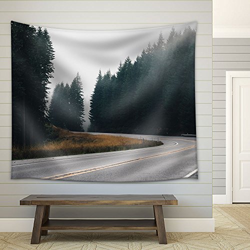 Tall Trees Along The Highway on a Foggy Day - Fabric Wall Tapestry Home Decor - 51x60 inches