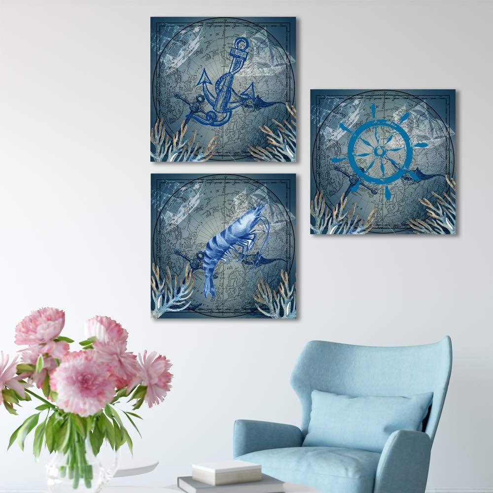 3 Panel Canvas Wall Art Nautical Map Pictures Home Wall Decorations for Bedroom Living Room Paintings Canvas Prints Framed - 16"x16"x3 Panels