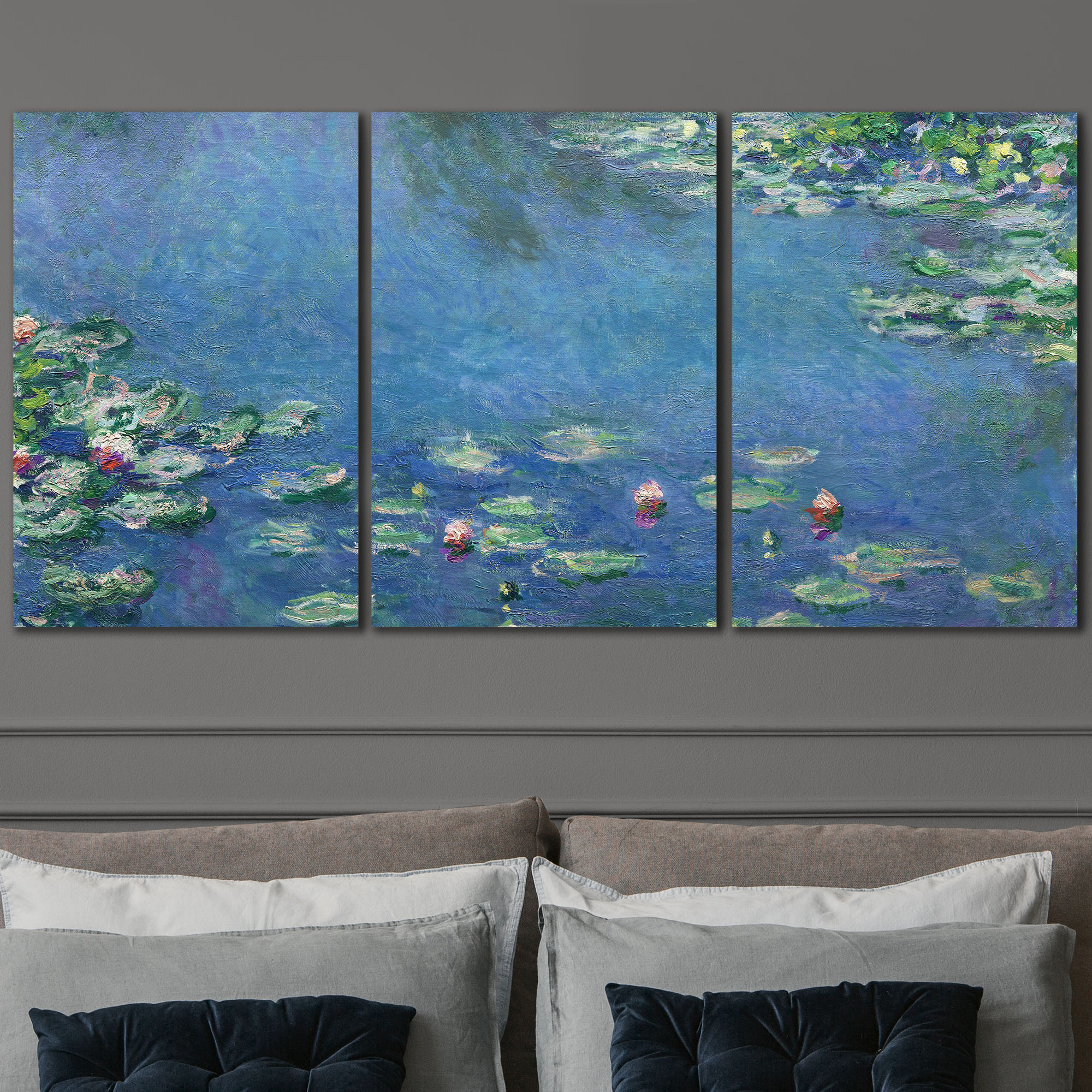 Water-Lilies by Claude Monet - 3 Panel Canvas Art