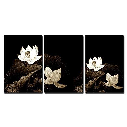 3 Piece Canvas Wall Art - Abstract of Brown Lotus for Background Used - Modern Home Art Stretched and Framed Ready to Hang - 24"x36"x3 Panels