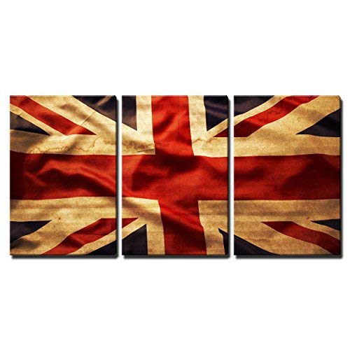 3 Piece Canvas Wall Art - Closeup of Grunge Union Jack Flag - Modern Home Art Stretched and Framed Ready to Hang - 24"x36"x3 Panels