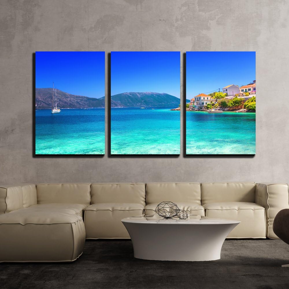 3 Piece Canvas Wall Art - Fiskardo Village, Kefalonia Island, Greece - Modern Home Art Stretched and Framed Ready to Hang - 24"x36"x3 Panels