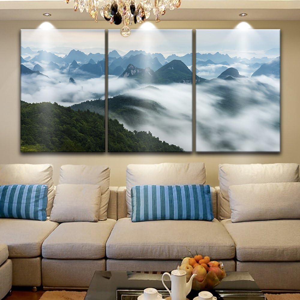 3 Panel Canvas Wall Art - Landscape of Mountains Among The Clouds - Giclee Print Gallery Wrap Modern Home Art Ready to Hang - 24"x36" x 3 Panels