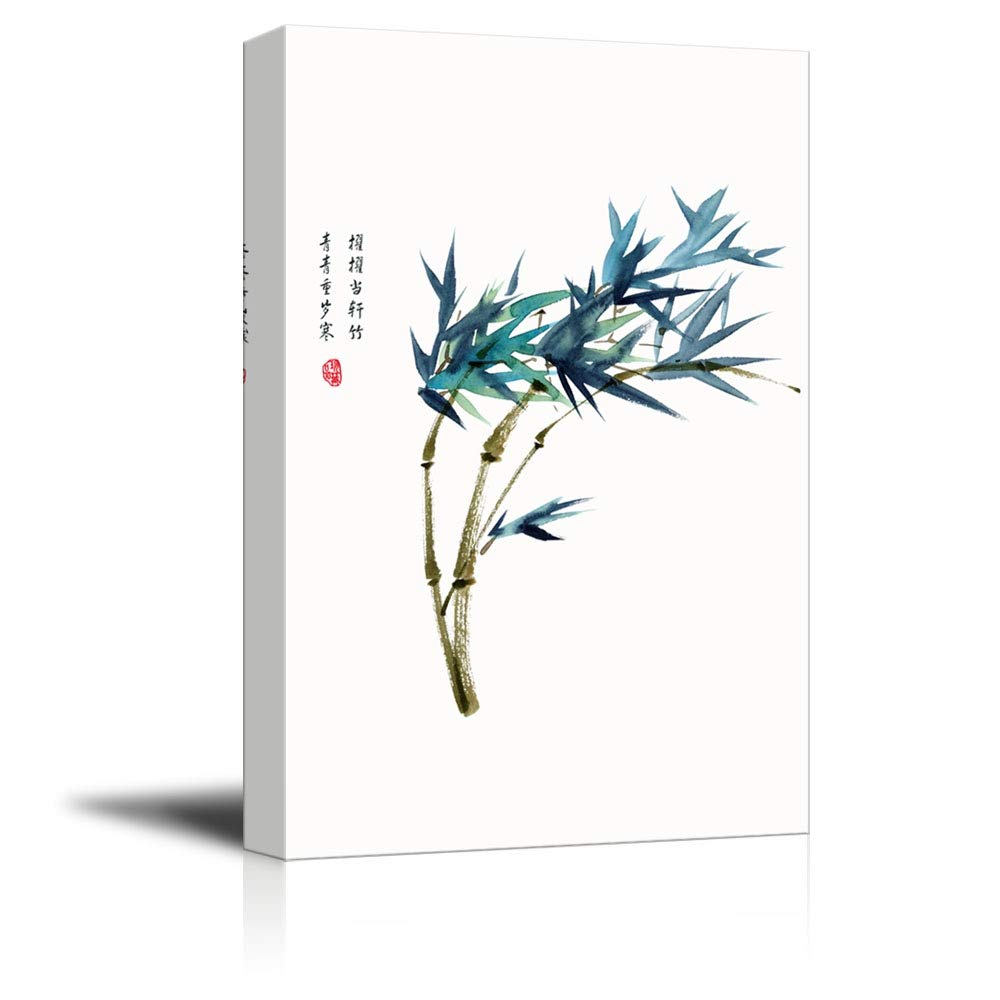 Bamboo Series Canvas Wall Art - Chinese Ink Painting Style Branch in Wind - 24x36 inches