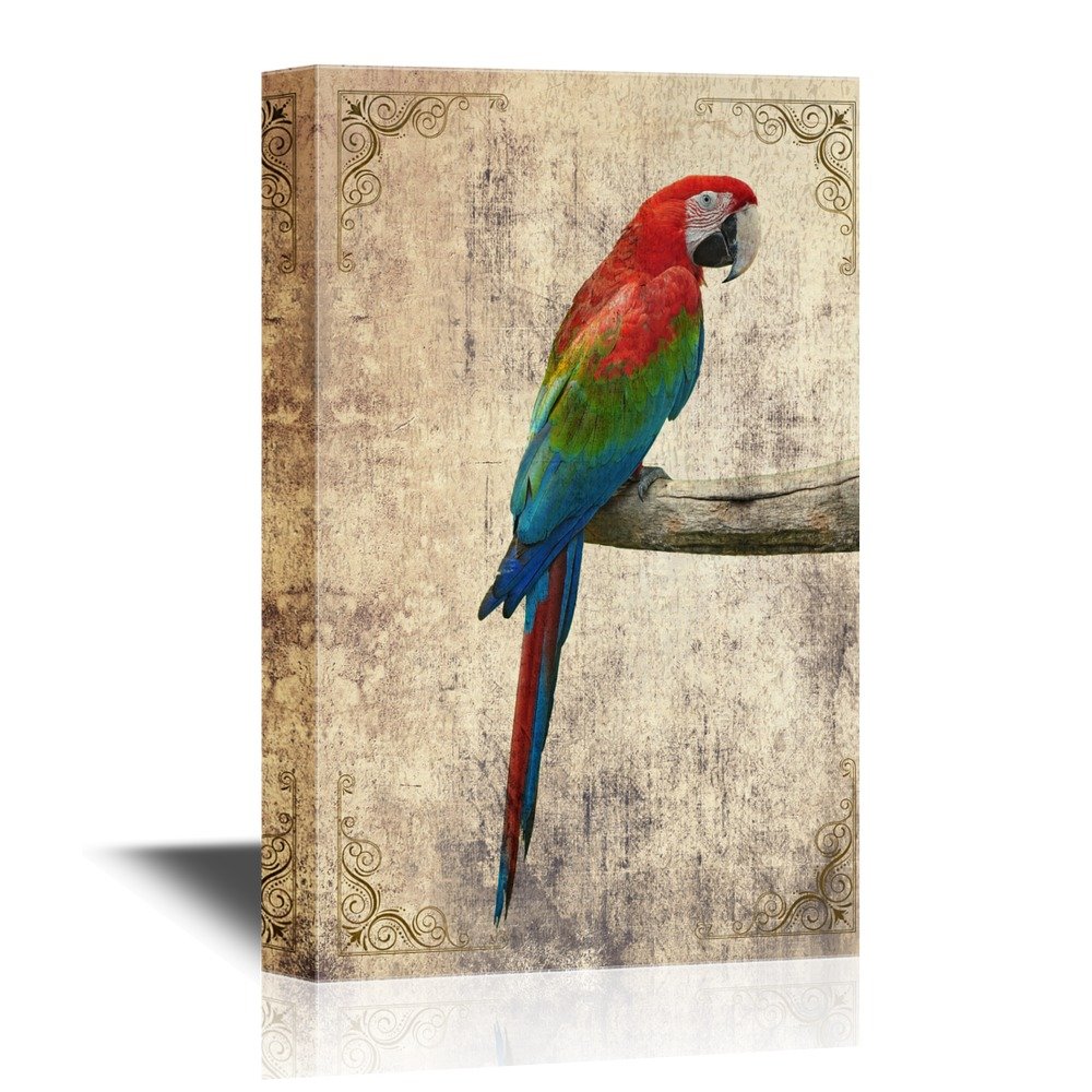 Birds and Poultry Canvas Wall Art - Colorful Parrot Standing on Tree Branch - Retro Style Gallery Wrap Modern Home Art | Ready to Hang - 32x48 inches