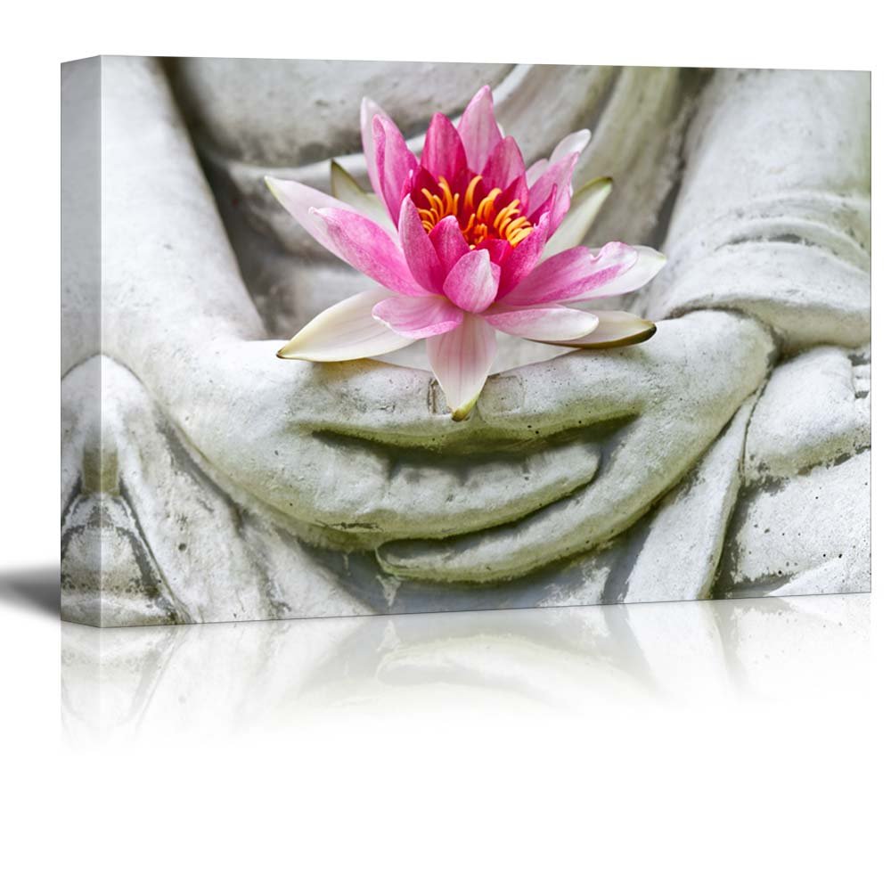 Buddha Statue Holding a Pink Lotus Flower - Canvas Art Home Art - 24x36 inches