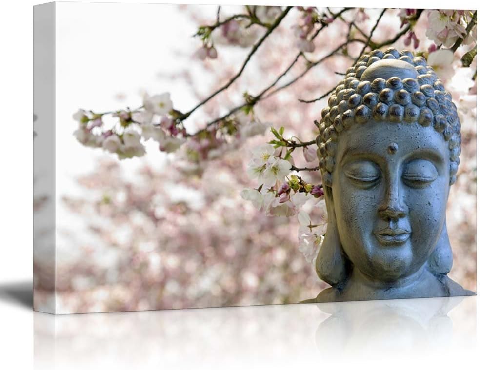 Buddha Statue on a Cherry Blossom Garden - Canvas Art Home Art - 16x24 inches
