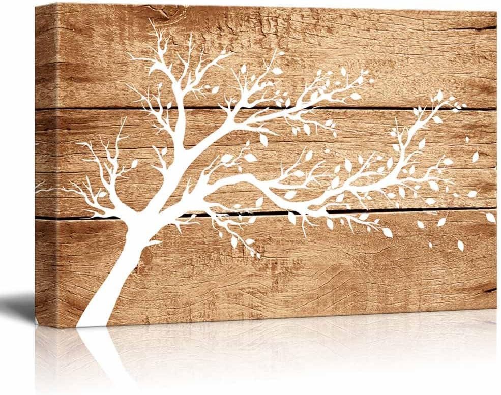 Canvas Prints Wall Art - Artistic Abstract Tree on Vintage Wood Background - 16" x 24"