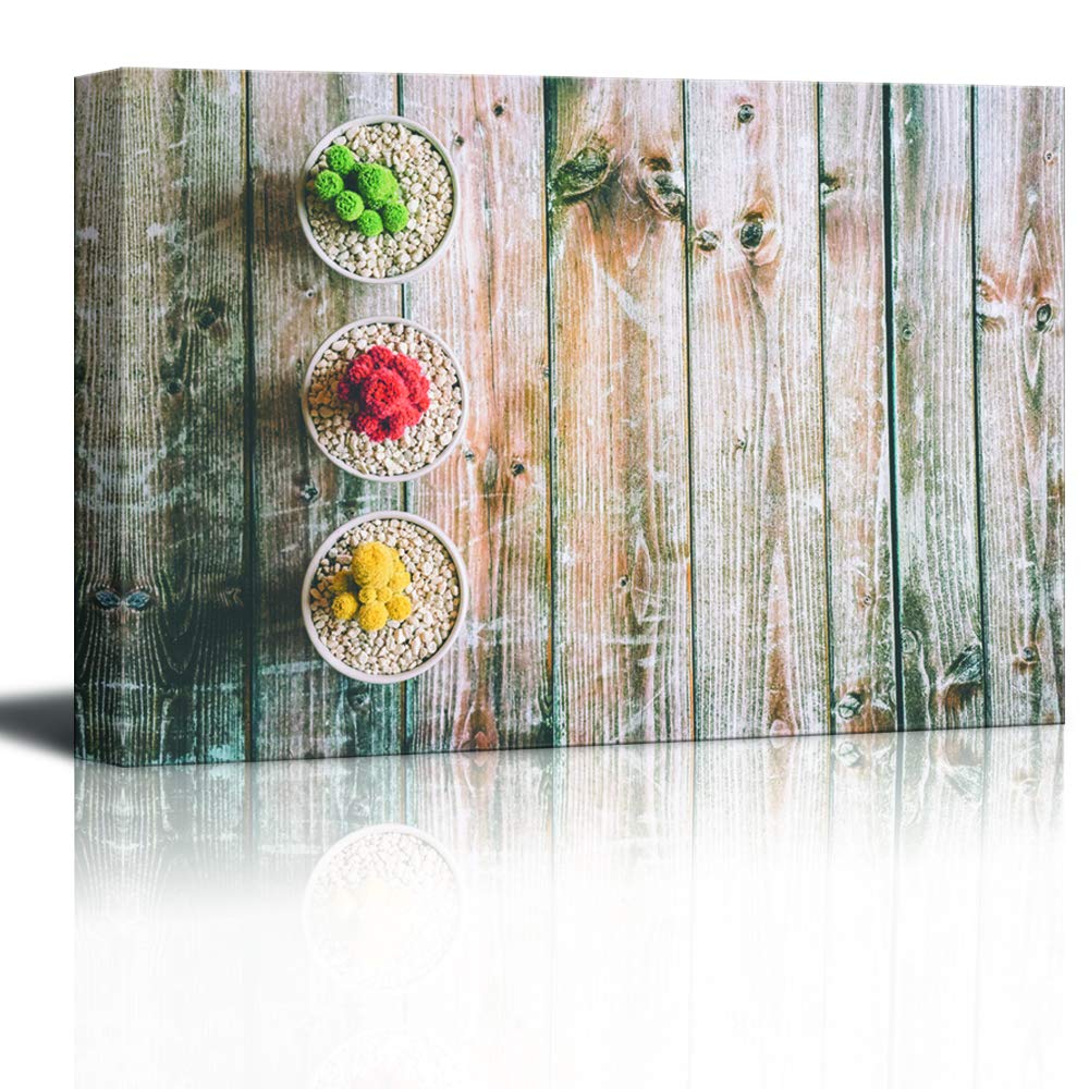 Canvas Wall Art Corlorful Cactus on Wood Desk Painting Artwork for Home Prints Framed - 12x18 inches