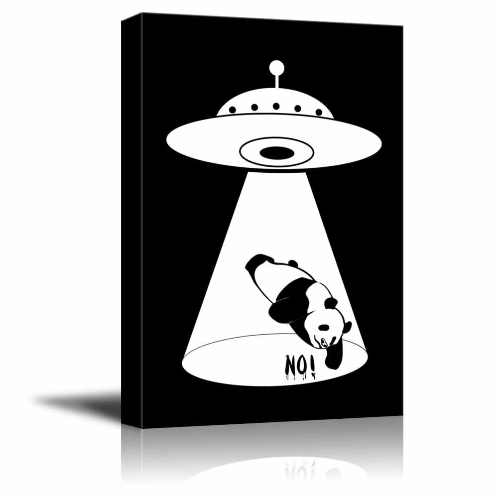 Canvas Wall Art - UFO Abduction of a Panda - Giclee Print Gallery Wrap Black and White Children's/Kids' Room Wall Decoration Ready to Hang - 24" x 36"