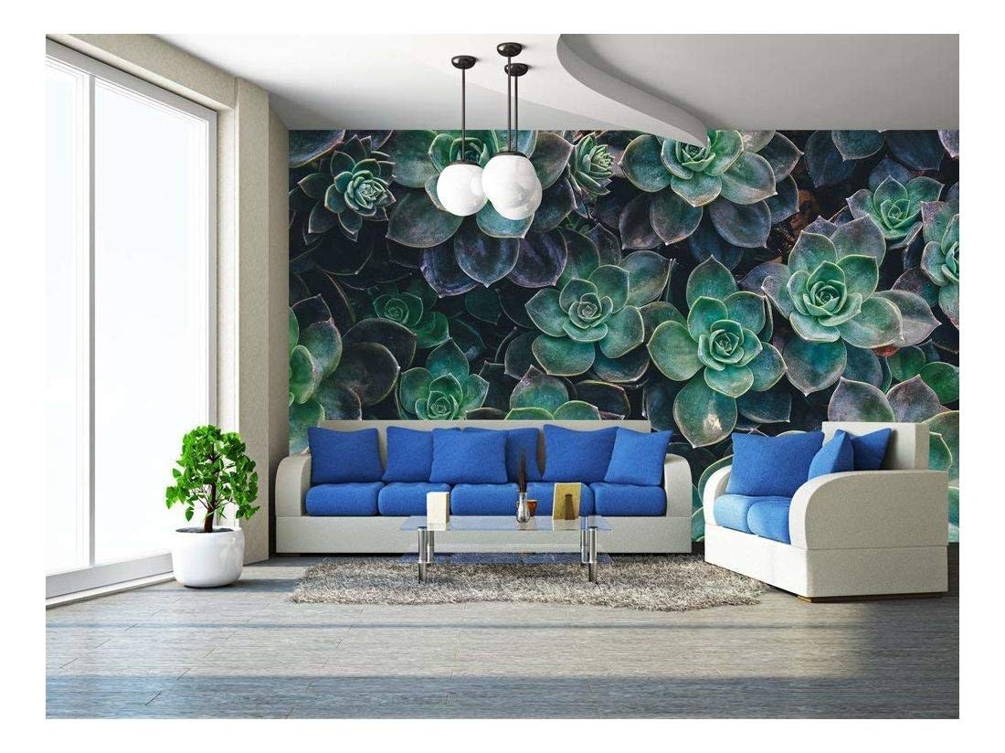 Closeup of Succulents - Removable Wall Mural | Self-Adhesive Large Wallpaper - 66x96 inches