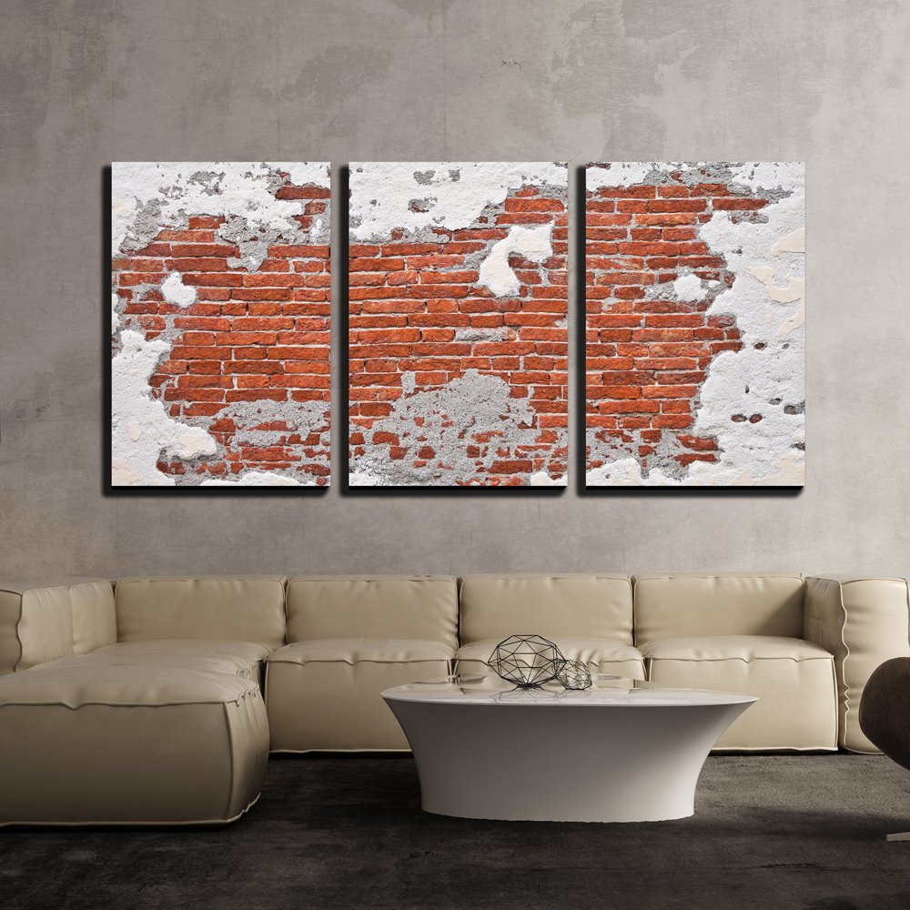 3 Piece Canvas Wall Art - Erosion of The Brick Wall - Modern Home Art Stretched and Framed Ready to Hang - 24"x36"x3 Panels