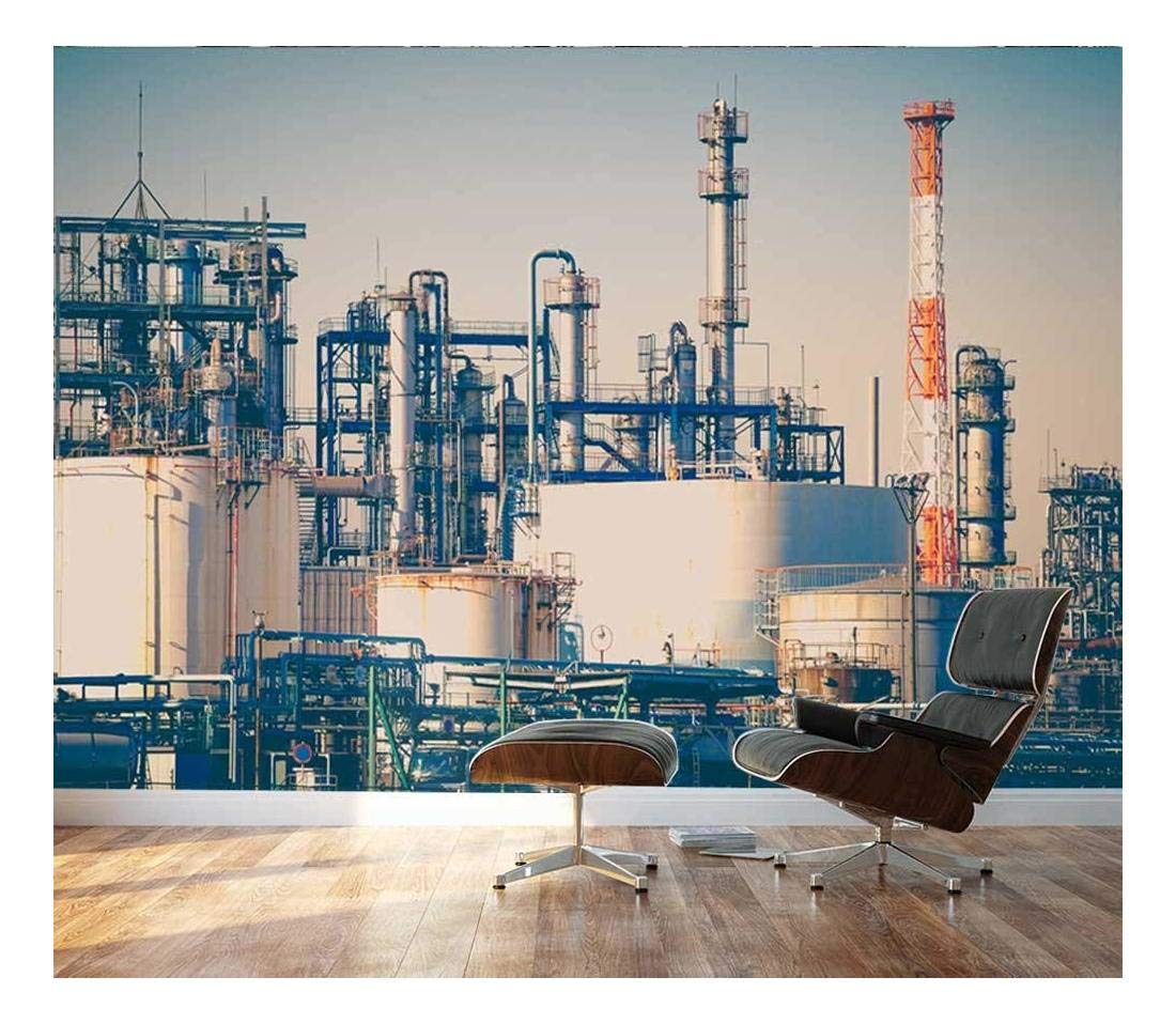Industrial View at Oil Refinery Plant Form Industry Zone - Removable Wall Mural | Self-Adhesive Large Wallpaper - 100x144 inches
