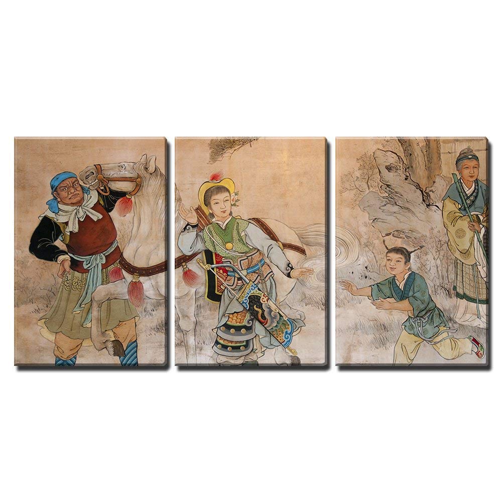 3 Piece Canvas Wall Art - Chinese Classic Wall Drawing - Modern Home Art Stretched and Framed Ready to Hang - 24"x36"x3 Panels