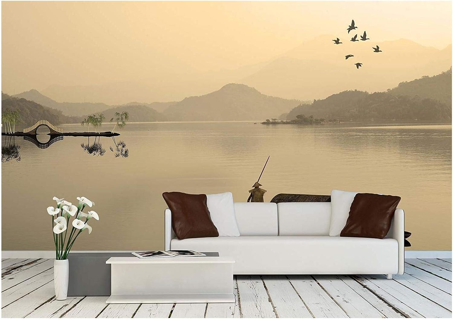 Painting Style of Chinese Landscape for Adv or Others Purpose Use - Removable Wall Mural | Self-Adhesive Large Wallpaper - 100x144 inches