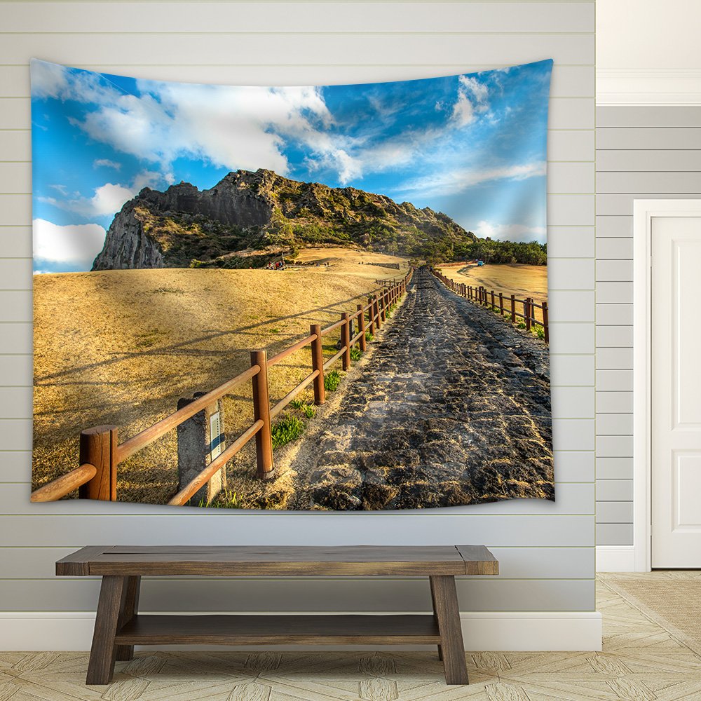 Songsan Ilchulbong in Jeju Island, South Korea - Fabric Wall Tapestry Home Decor - 51x60 inches