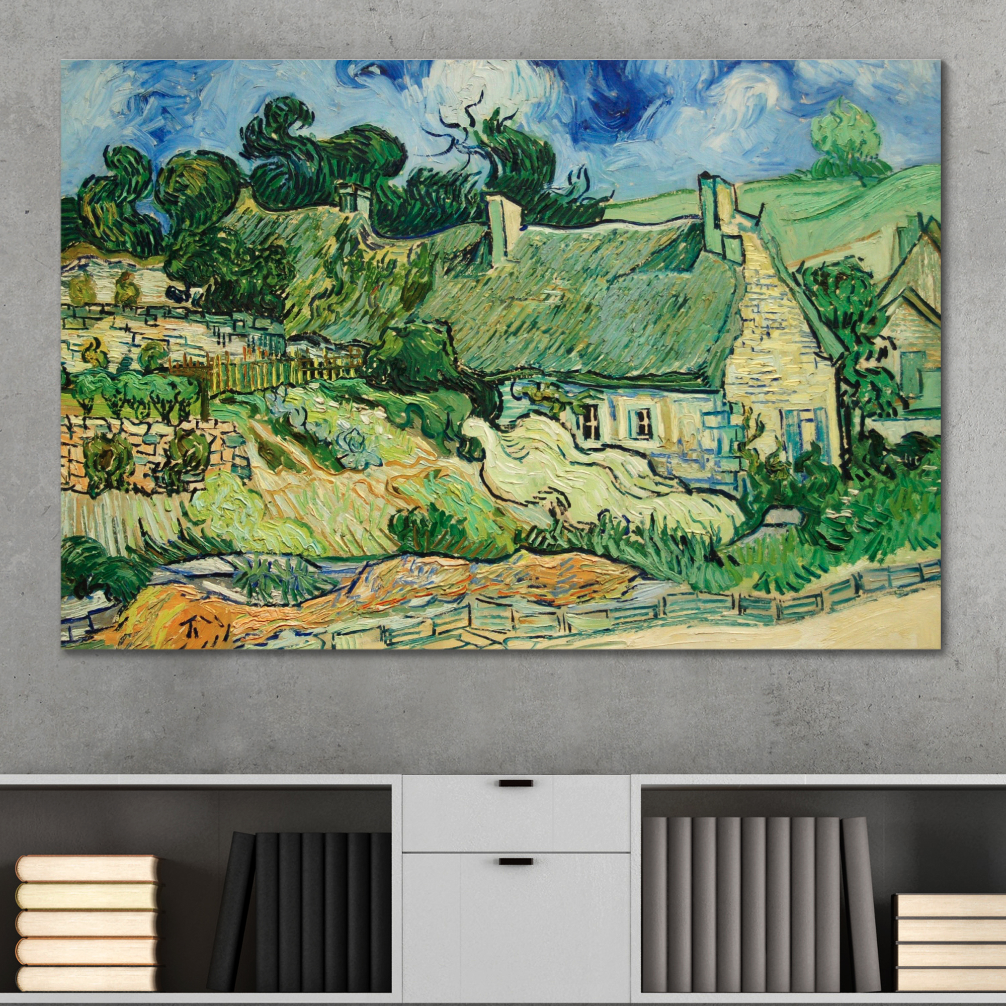 Thatched Cottages at Cordeville by Vincent Van Gogh - Canvas Print Wall Art Famous Painting Reproduction - 32" x 48"