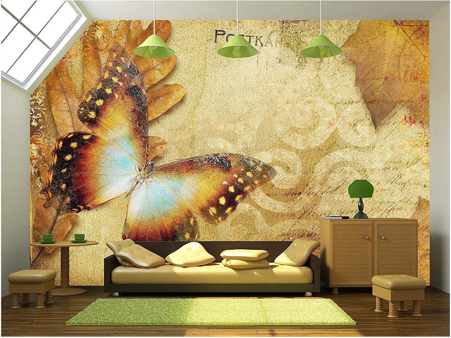 Vintage Autumn Card with Leaves and Butterfly - Removable Wall Mural | Self-Adhesive Large Wallpaper - 100x144 inches