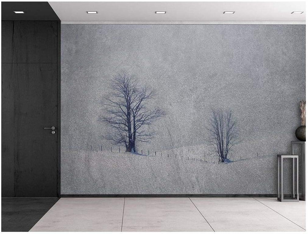 Wall26 - Lone Trees on Hills of Snow Against a Grainy Background - Wall Mural, Removable Sticker, Home Decor - 100x144 inches