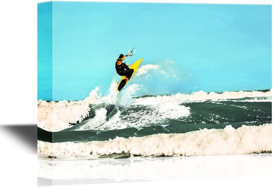 Water Entertainment Canvas Wall Art - Surfer on His Surfer Board - Gallery Wrap Modern Home Art | Ready to Hang - 16x24 inches